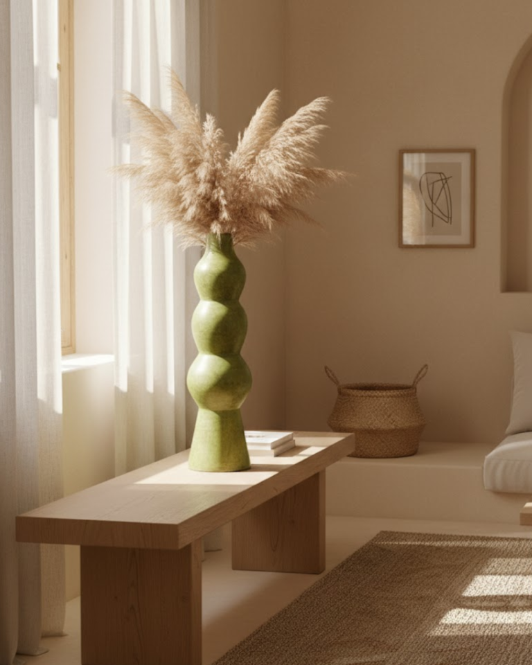 Vases modulables en céramique ou verre : ils accueillent fleurs fraîches, branches décoratives ou sont simplement utilisés comme objets de design.