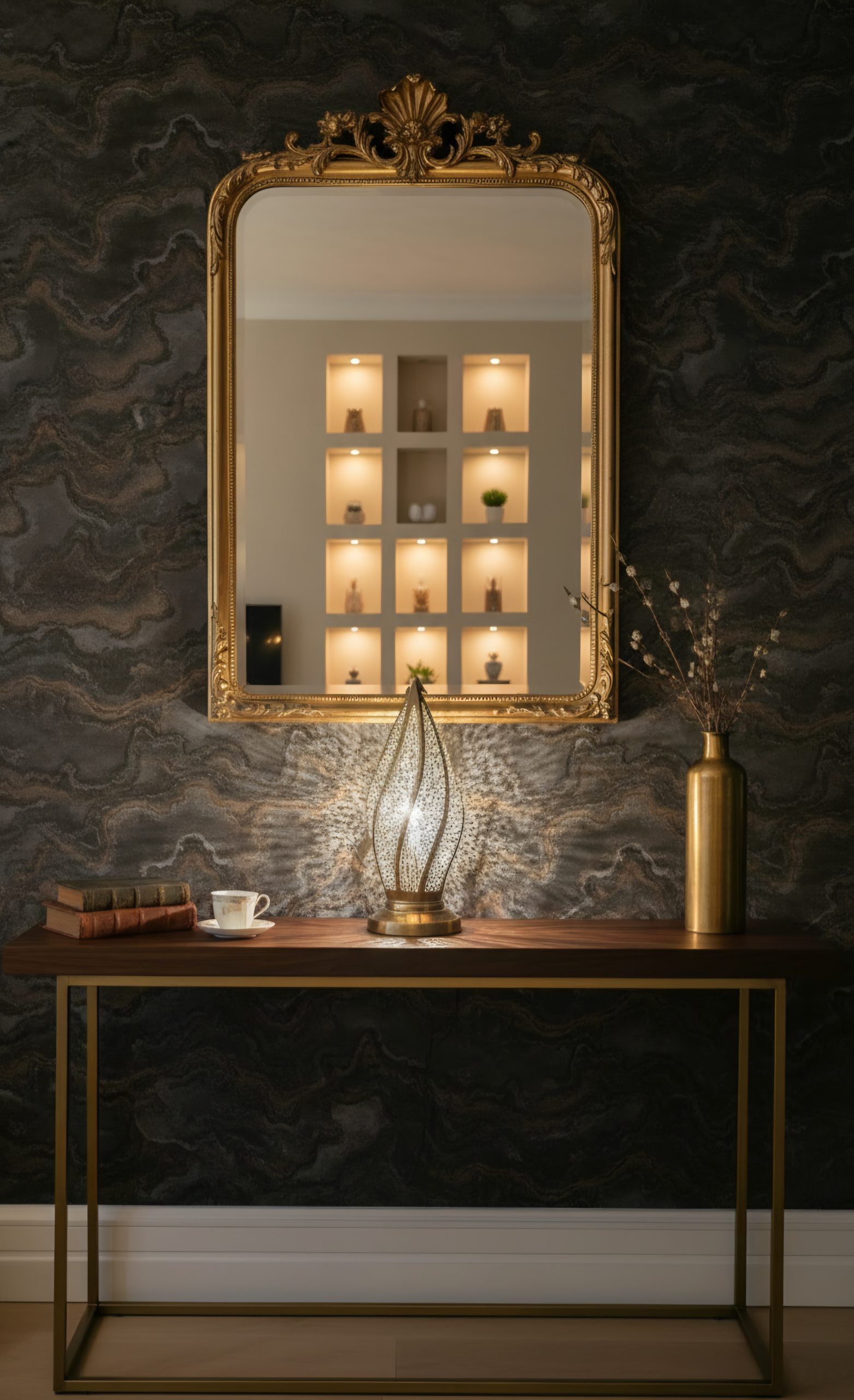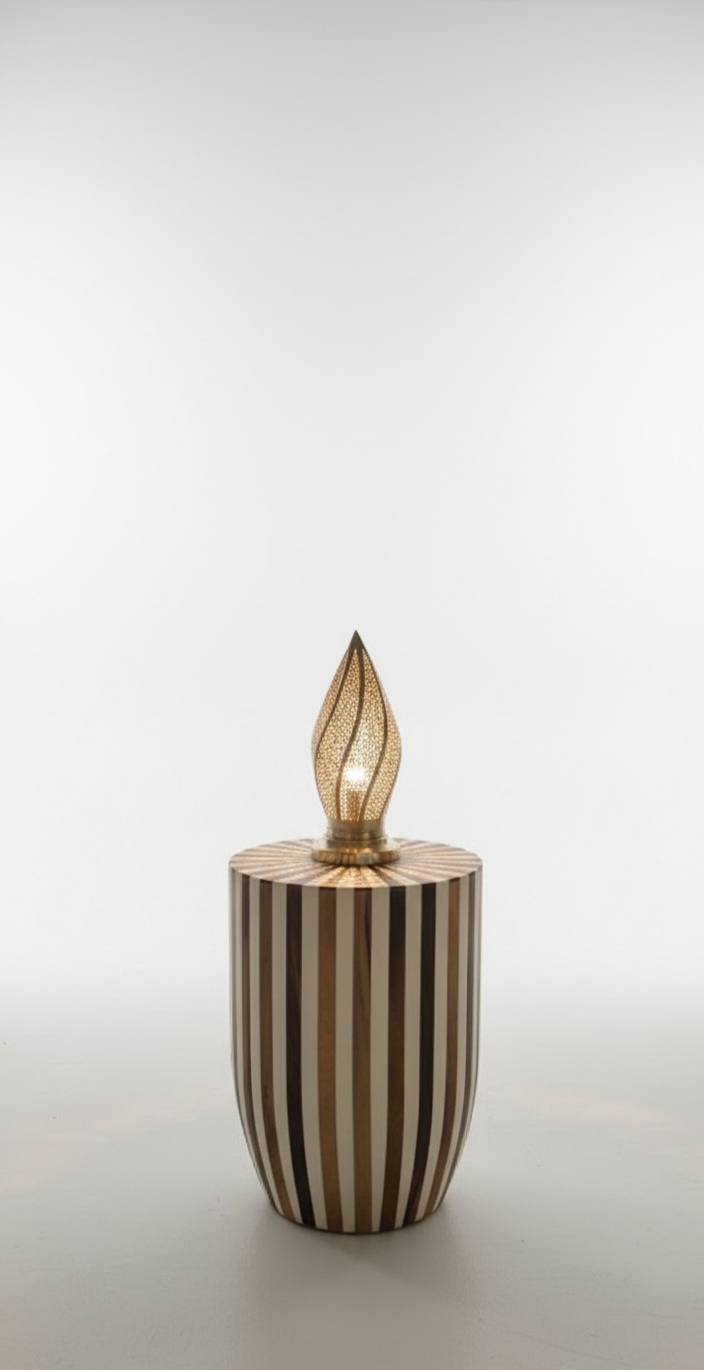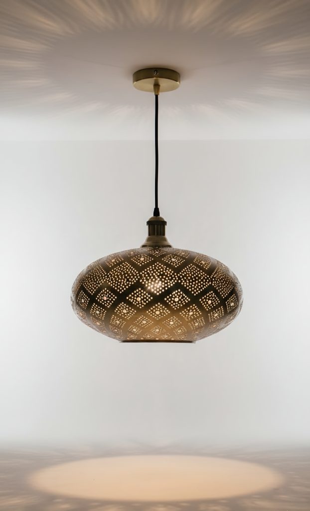 Cette lampe de chevet en cuivre est conçue pour l’intimité du soir. Elle rayonne sur votre mur, en lui donnant une discrète touche orientale.