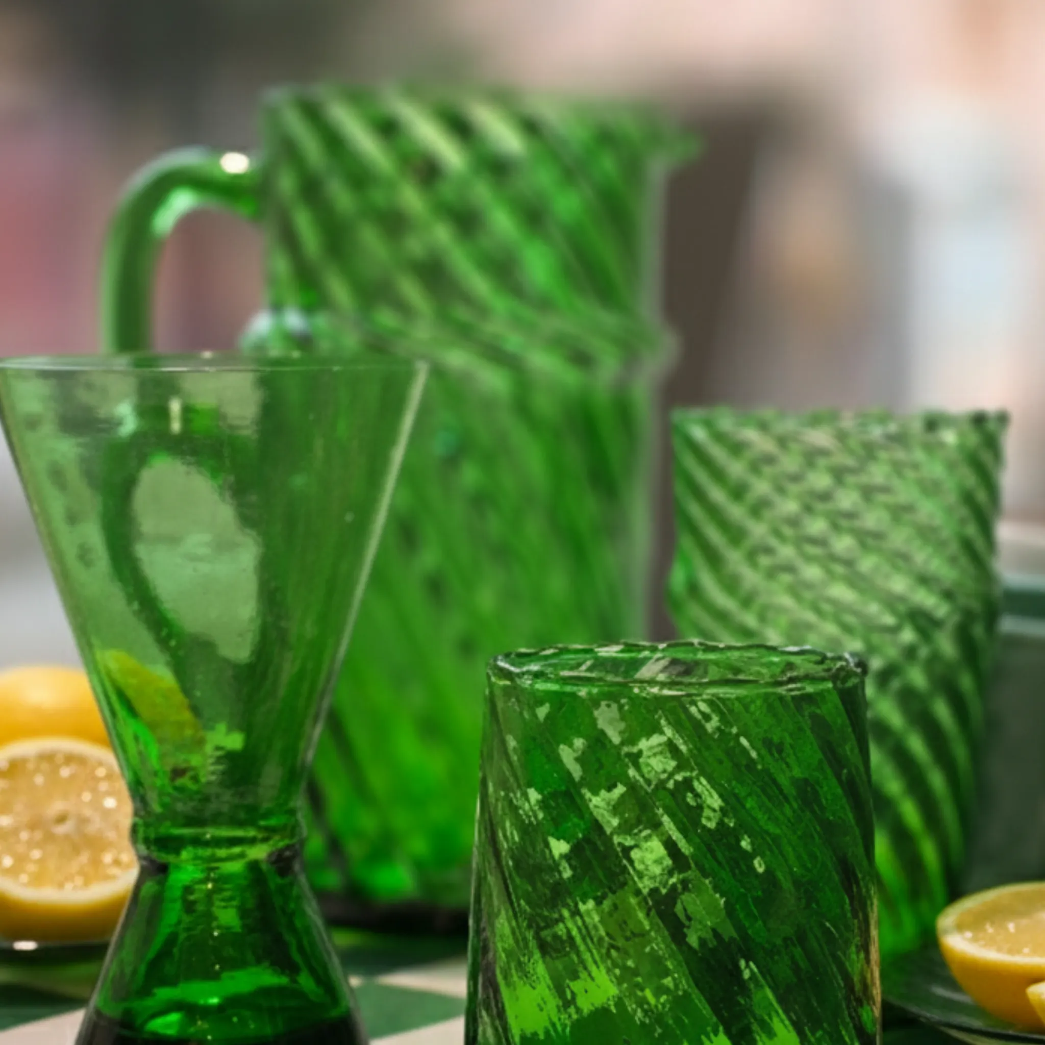 Belle carafe soufflée avec de fines spirales. Un grand classique de « Verre Beldi ».