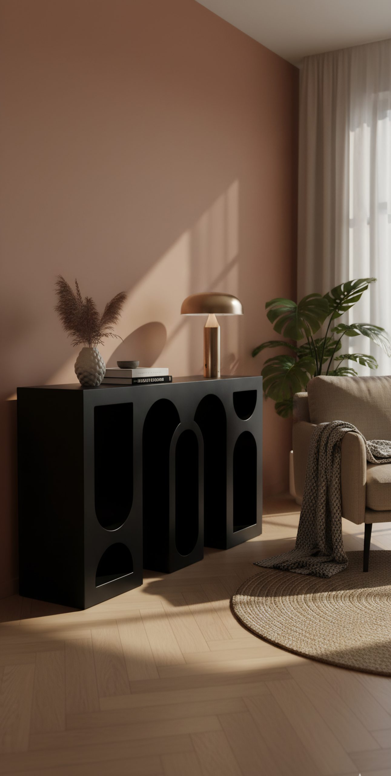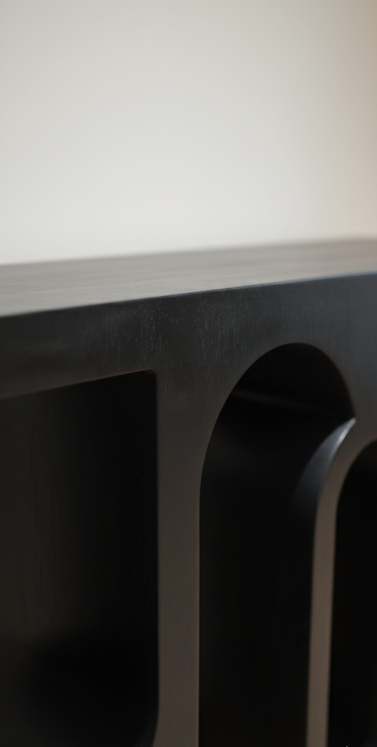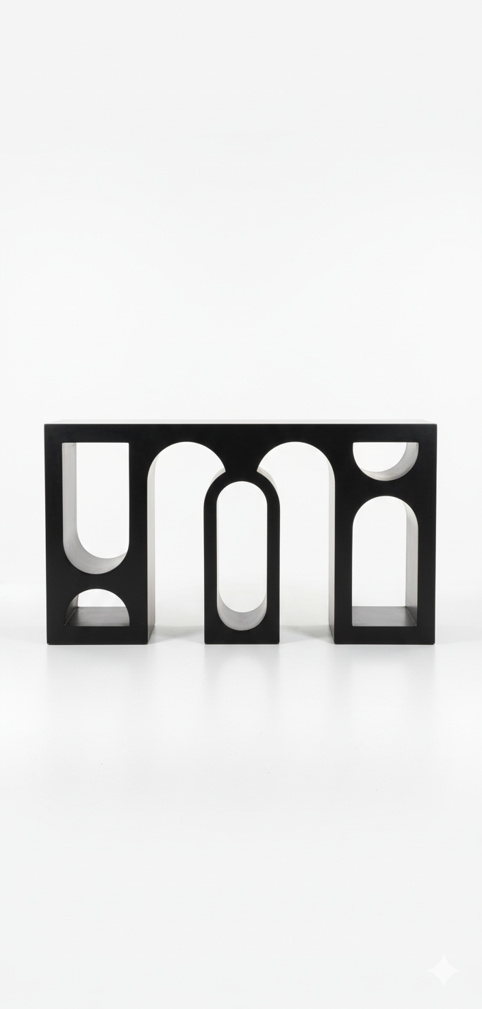 Console sculpturale noire, inspirée des arches méditerranéennes . ARCO allie équilibre et élégance. Chaque pièce est façonnée à la main, avec ses nuances et son caractère unique .
