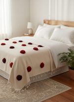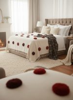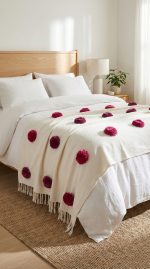 Couvre-lit couvert de pompons colorés.