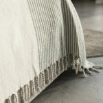 Couvre-lit aux fines rayures. Certains imaginent ce modèle pour des rideaux. Pourquoi pas?