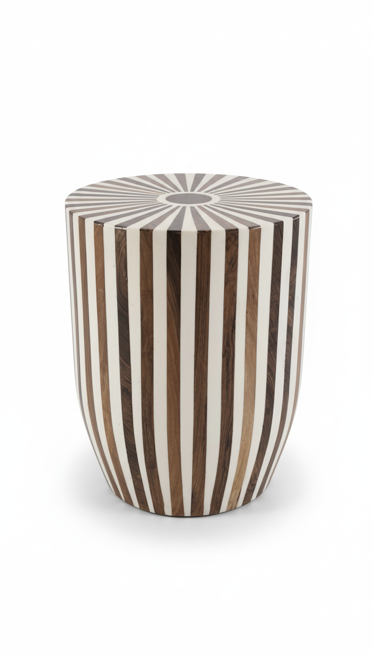 Le guéridon RAY en résine et bandes fines de noyer viendra prolonger votre lit, votre banquette ou servir de support aux objets que vous souhaitez mettre en valeur.