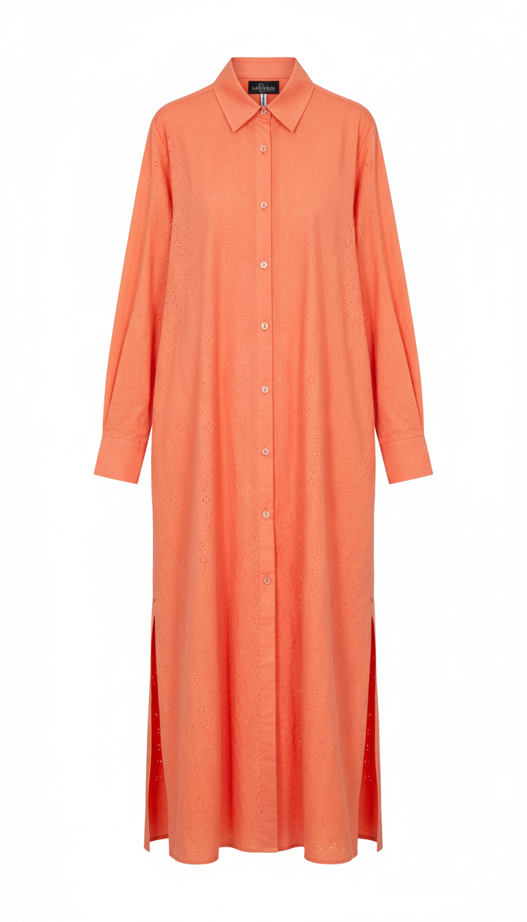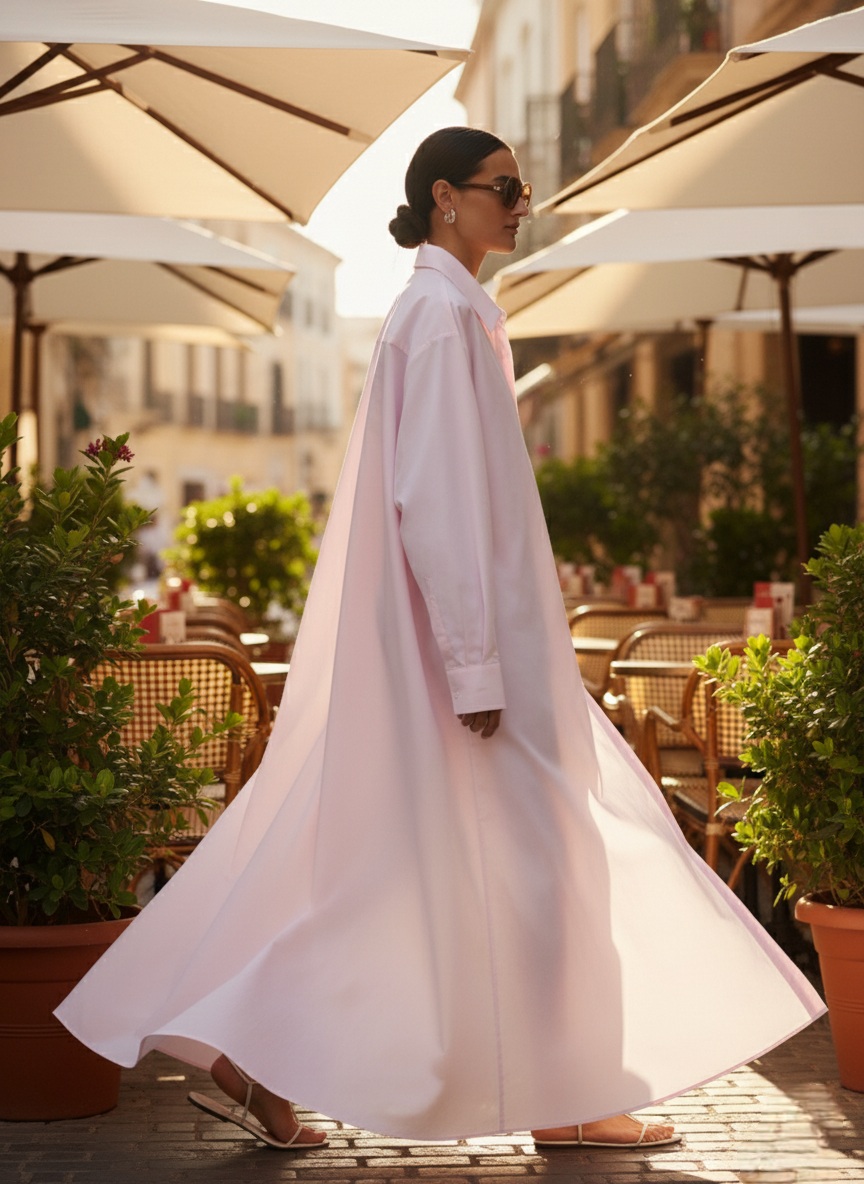 Robe chemise RAZIA en coton léger, coupe décontractée, longueur maxi , col pointu, épaule tombante , poignets boutonnés , fermeture boutonnée sur l’avant , non doublé. 100% coton