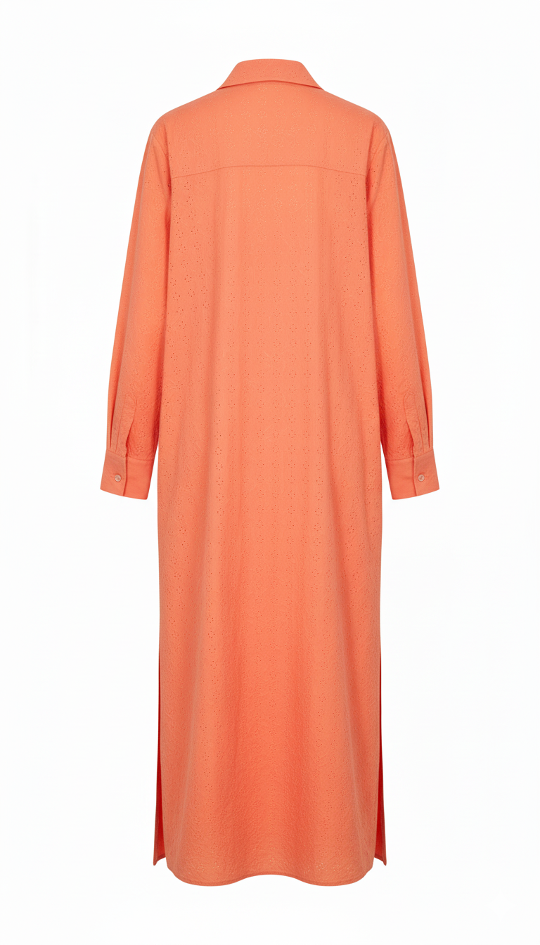 Robe chemise RAZIA en coton léger, coupe décontractée, longueur maxi, col pointu, épaule tombante, poignets boutonnés, fermeture boutonnée sur l’avant, non doublée. 100 % coton