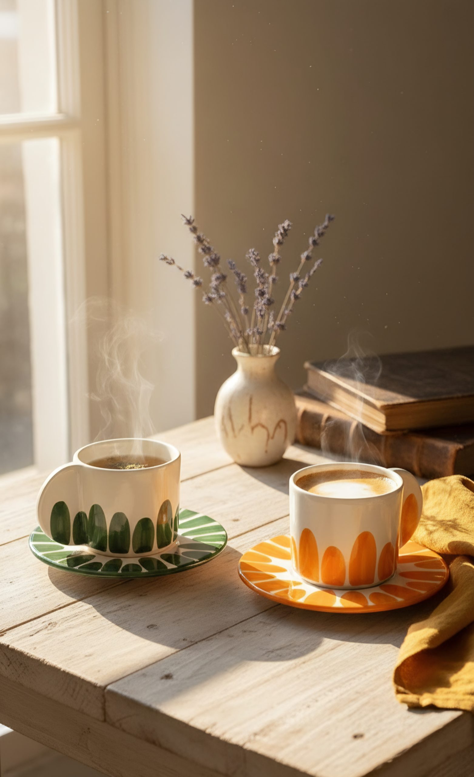 Set de tasses ATIKA en céramique artisanale, fait main. Une pièce délicate pour sublimer vos rituels et l’art de vivre La Bahia.