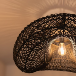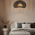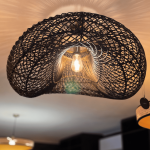 Suspension noire. Armature en fer , entourage en rotin teinté. Pour une atmosphère de caractère .