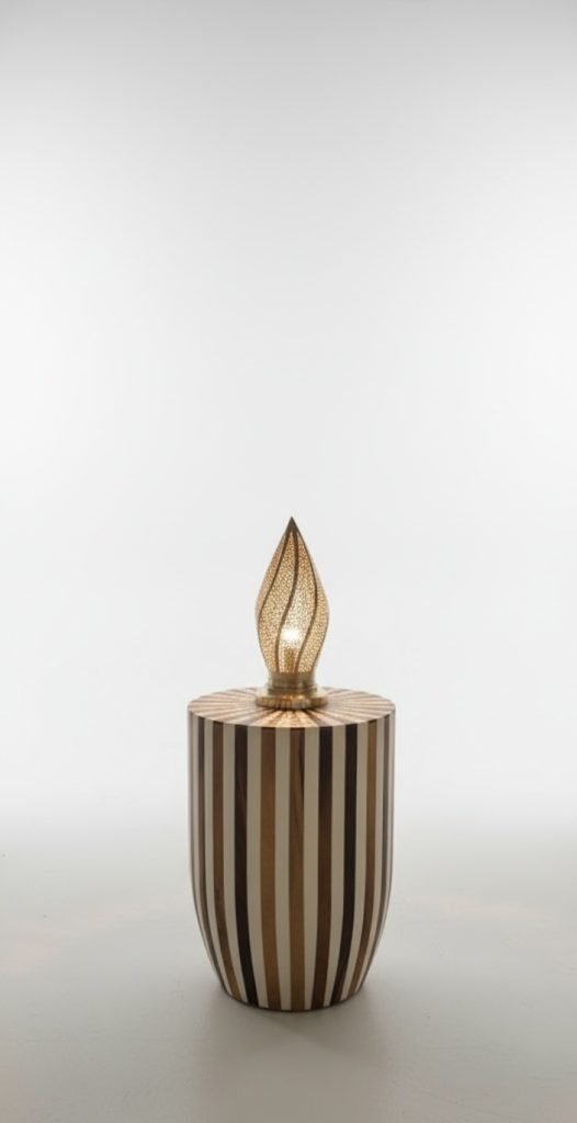 Ce plafonnier est la signature d’un raffinement affirmé, inspiré du style Art Déco souligné par de fines bandes de cuivre.