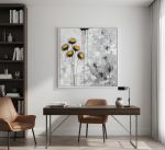 Dimensions: H 125 cms x l 135 cms. Encadrement blanc inclus.