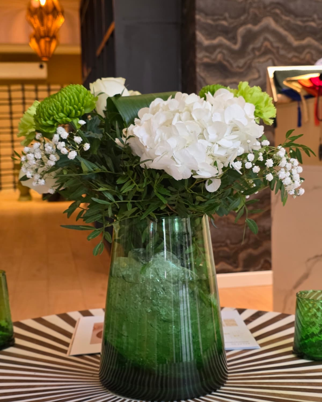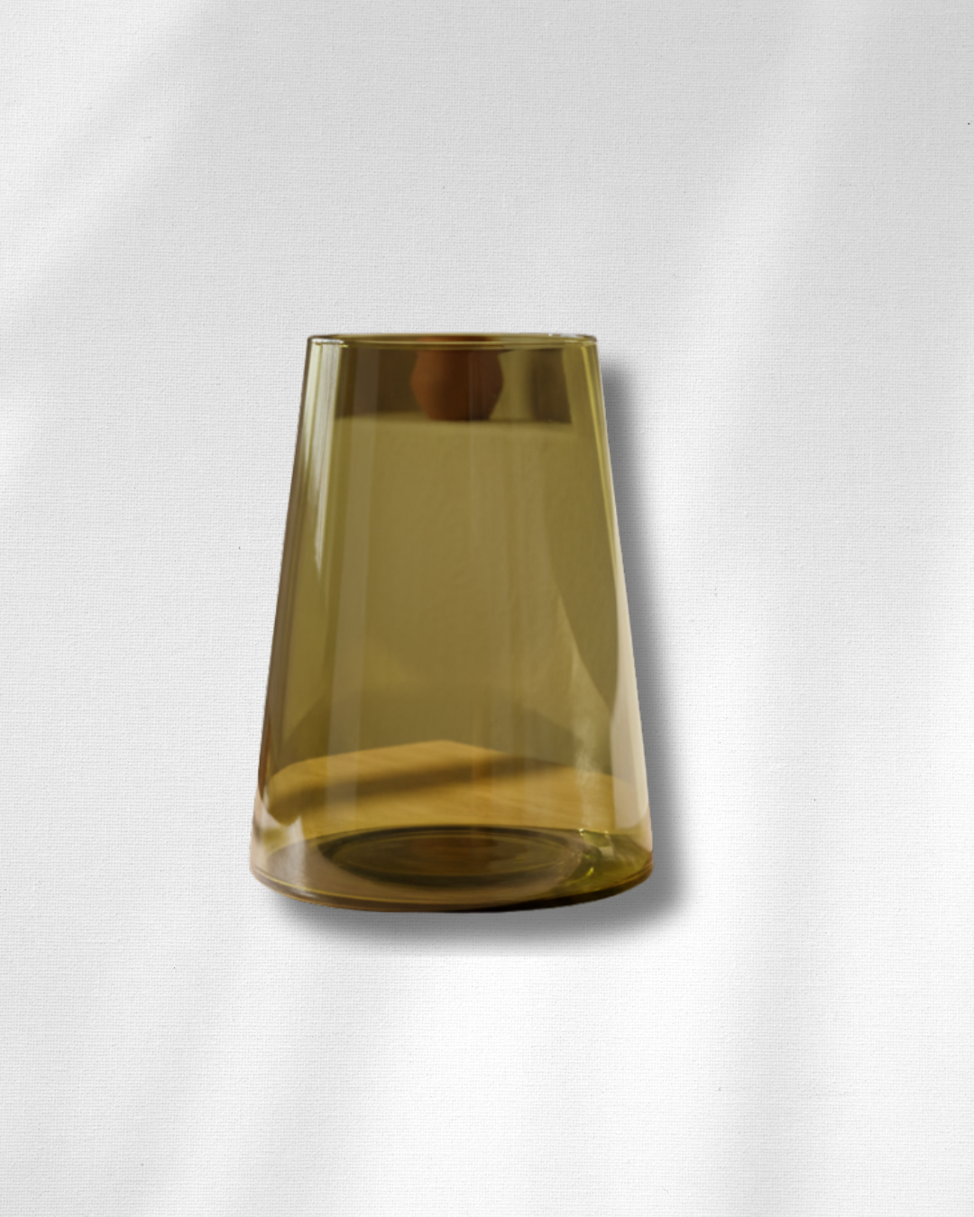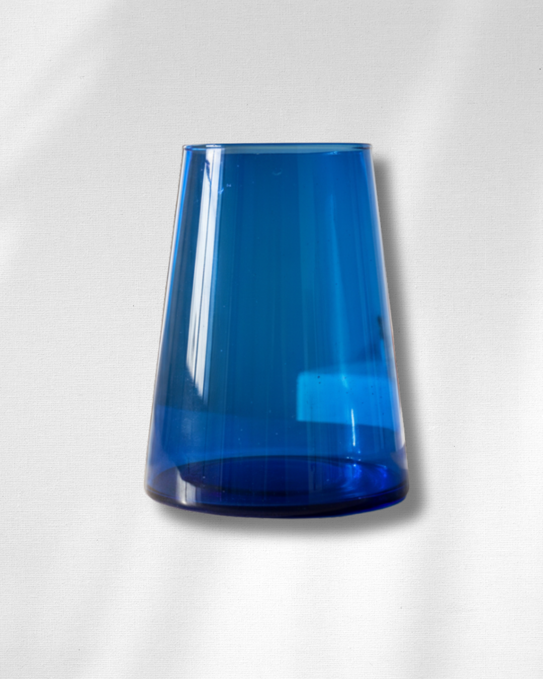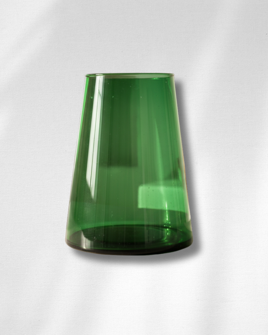 Verre soufflé à la bouche, après recyclage. Un grand classique de la maison “Verre Beldi”.