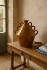 Le Vase Rifain s’inspire des formes ancestrales utilisées dans le nord du Maroc, revisitées avec une finition émaillée couleur terre cuite.