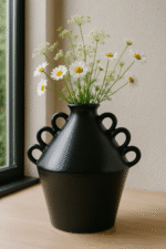 Le Vase Rifain s’inspire des formes ancestrales utilisées dans le nord du Maroc, revisitées avec une finition émaillée couleur terre cuite. Ses multiples anses décoratives lui confèrent une silhouette unique et audacieuse, parfaite pour apporter une touche artisanale à votre intérieur. À utiliser comme objet décoratif ou pièce centrale sur une table ou une étagère.