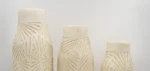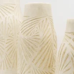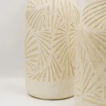 Ensemble de 3 vases en céramique au design artisanal, ornés de motifs gravés géométriques. Parfaits pour une décoration intérieure minimaliste, bohème ou naturelle.