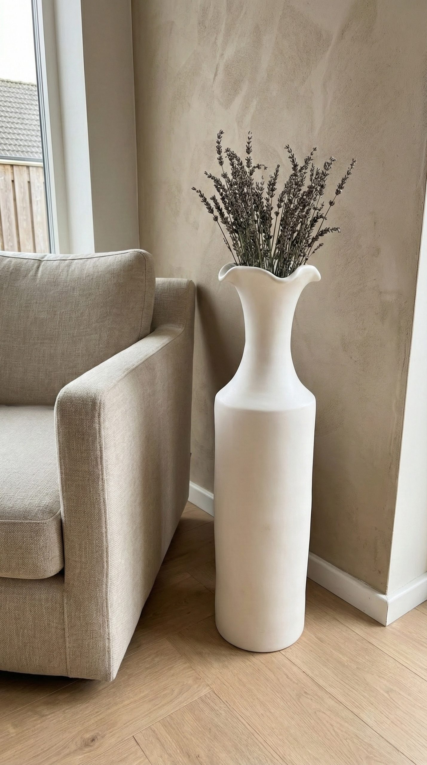 Vase blanc élancé en céramique. Adapté pour votre intérieur ou votre extérieur.