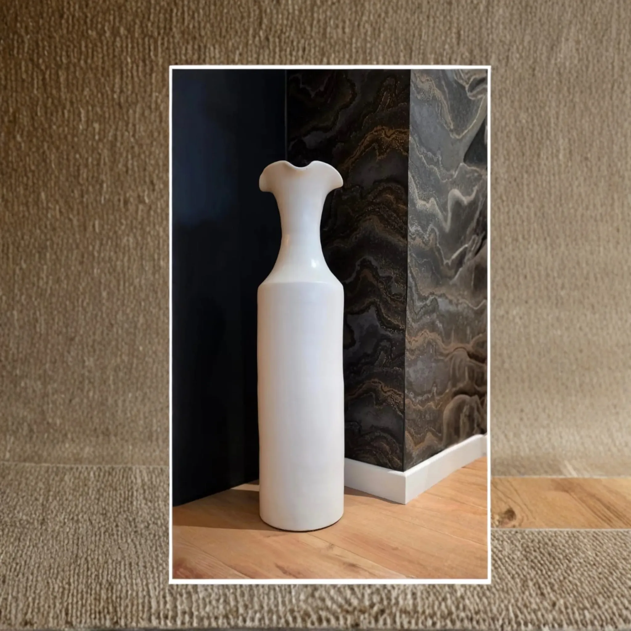 Vase blanc ONDINE élancé en céramique. Adapté pour votre intérieur ou votre extérieur.